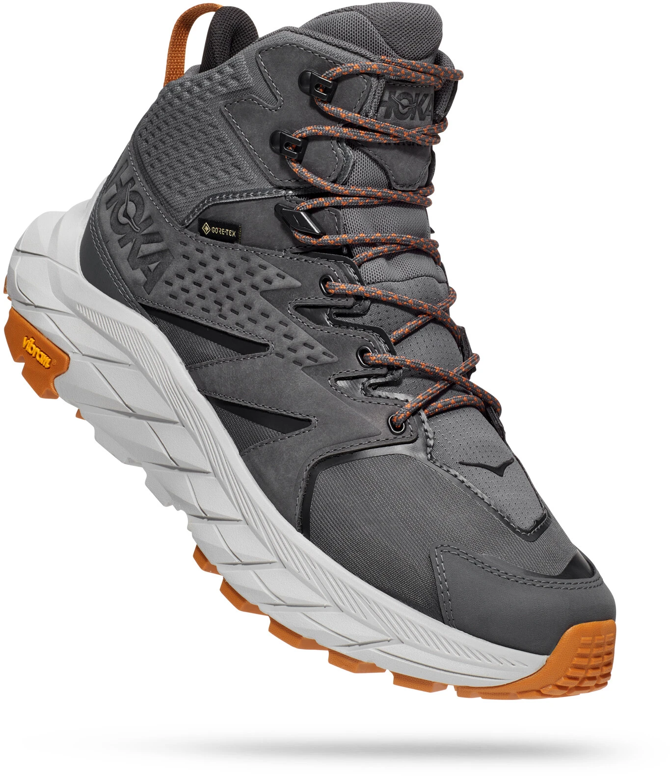 De Anacapa Mid GTX is een duurzaam vervaardigde dagwandelschoen, ontworpen voor weekendavonturen en een kennismaking met het buitenleven. Het veelzijdige silhouet is gemaakt van lichtgewicht leer en in de kraag en veters is gerecycled polyester verwerkt. Deze waterdichte wandelschoen is voorzien van een achilleshielversterkend treklipje en een inlegzool op sojabasis (50%). GORE-TEX is gemaakt van gerecycled textiel om de voeten droog en comfortabel te houden in natte omstandigheden. De Anacapa Mid GTX is een innovatieve schoen met HOKA’s verlengde hiel geometrie en een Vibram Megagrip buitenzool voor uitstekende tractie op oneffen terrein.